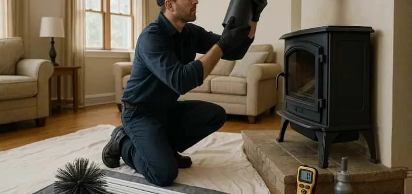 Poor draft causes smoke roll-out and sluggish startups. We evaluate connector angles, reduce unnecessary elbows, fix diameter mismatches, and make sure the cap is clear. After repairs, we perform an energy efficiency tune up to help the stove breathe better in German Mills, Markham.