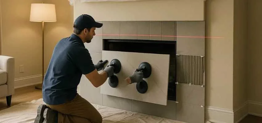 A face refresh changes the mood without a full rebuild. We select heat capable backers, keep joints tight, and align courses carefully so textures read clean from across the room in South Unionville, Markham.
